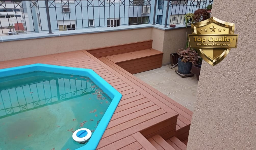 Especialização em pintura de grandes áreas externas, com foco em proteção contra interpéries e uso de equipamentos como balancins e andaimes com uso de EPIs para garantir a segurança. Especialização em impermeabilização de pisos e paredes. Identificamos e corrigimos patologias, trincas e infiltrações
